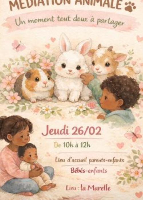 🐾 Médiation animale – un moment tout doux à partager 🐰 📅 Jeudi 26 février ⏰ 10h–12h 👶 Lieu d’accueil parents-enfants (bébés-enfants) 📍 La Marelle Venez partager un temps de douceur et de découverte autour des animaux, spécialement conçu pour les tout-petits et leurs parents 💕 #MédiationAnim
