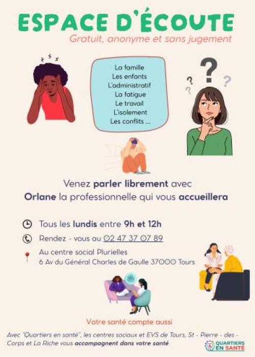 Un espace d’écoute gratuit, anonyme et sans jugement est proposé au Centre social Plurielles à Tours.