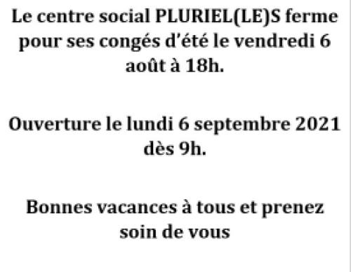 ⚠️⚠️ATTENTI0ON ⚠️⚠️ Le centre social PLURIELLES sera ferm